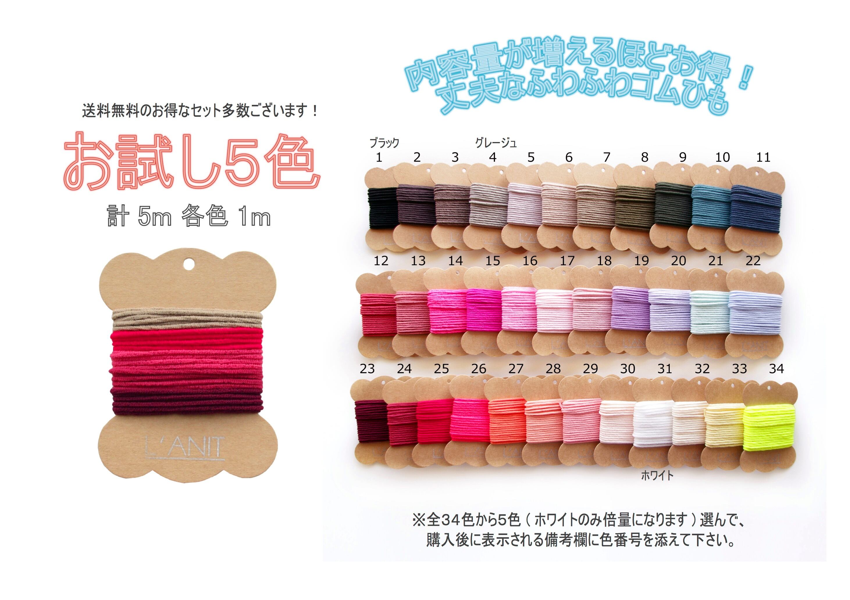お好みの ゴムひも 2色(各2.5m)計5mをお届けします。