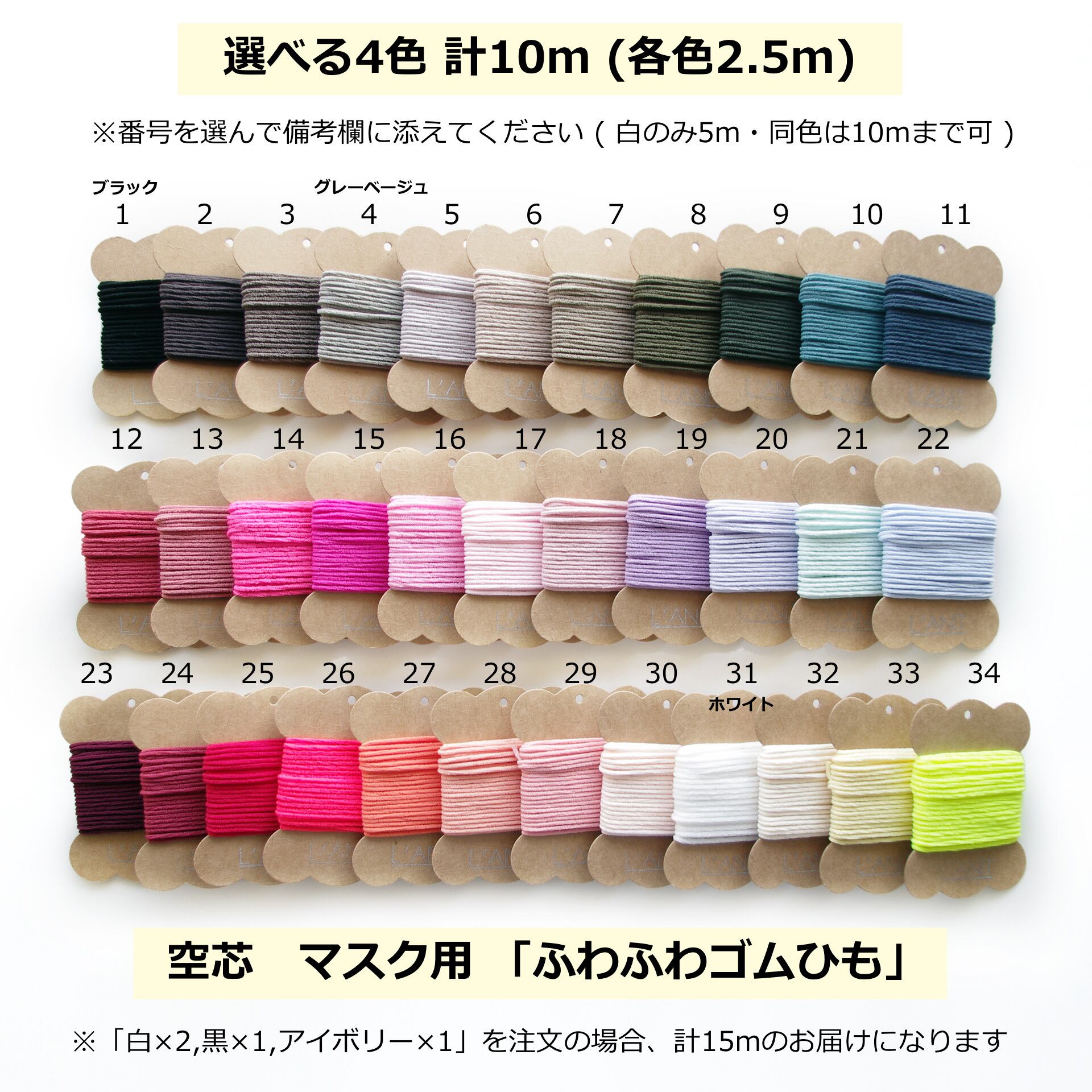 お好みの ゴムひも 4色(各2.5m)計10mをお届けします。